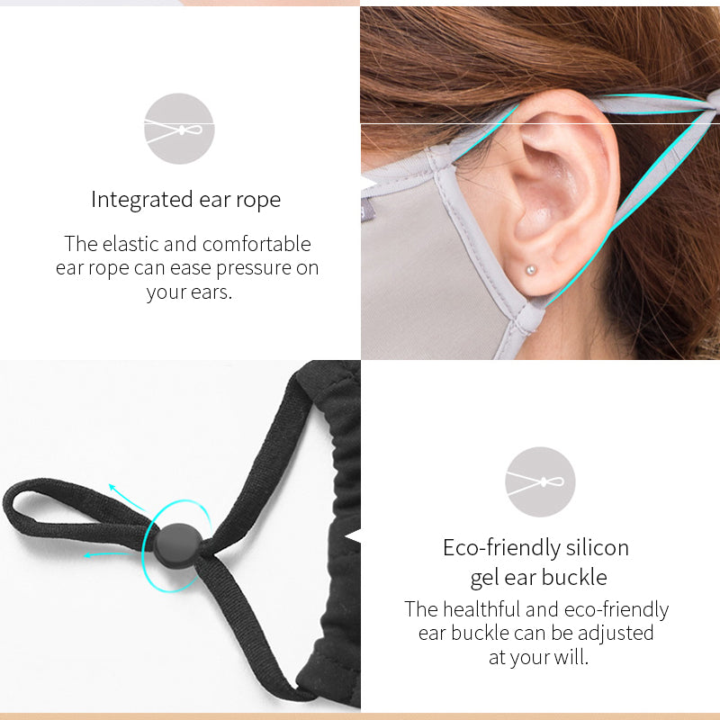 The adjustable earloops don't tighten your ears, which is high elasticity and comfortable without binding. It is flexible to adjust the length to fit various face shapes, accommodates most head sizes, and suitable for both women and girls.