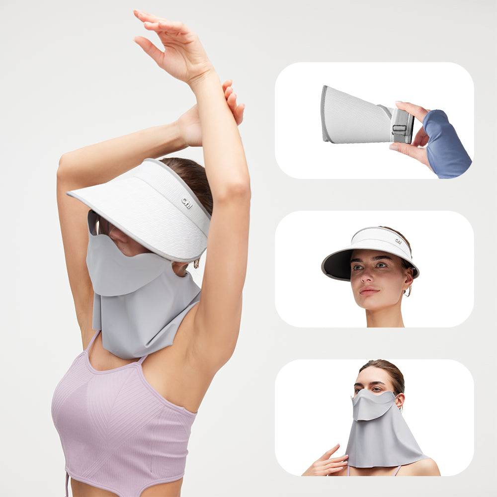 Sun Visor with Detachable Neck & Face Shield Multi-Function Slide Track Design UPF2000+